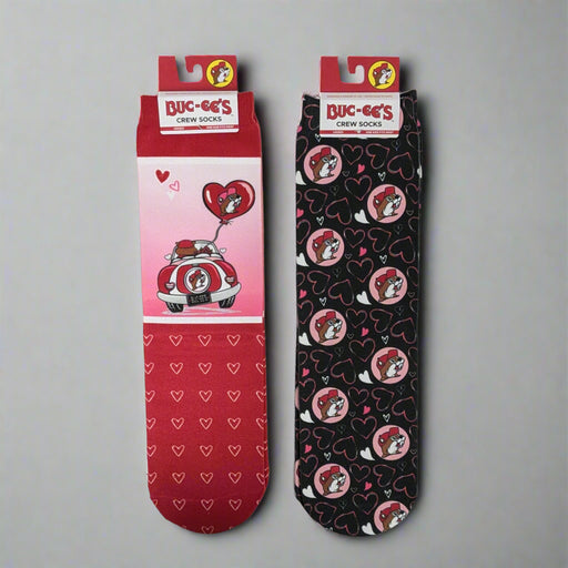 Step into Valentine's Day with these charming Buc-ee’s crew socks! Designed for comfort and style, this set features two unique designs: a red sock...